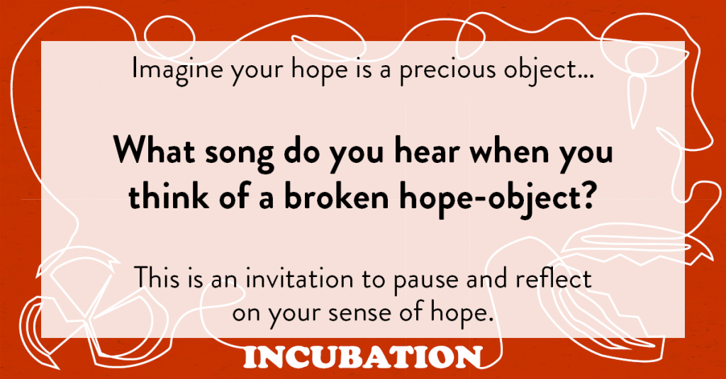 In my bumpy ride with hope, I have come to value the importance of music to accompany me in the depths. It makes me feel less alone. Perhaps it will make you feel the same?